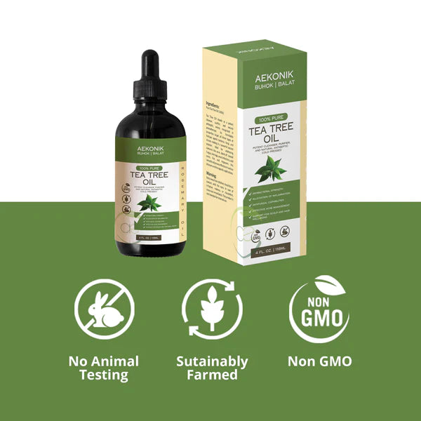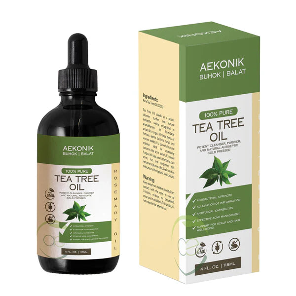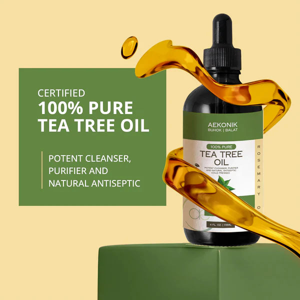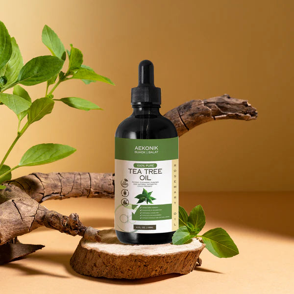 Discover the powerful benefits of AEKONIK 100% Pure Tea Tree Oil, a natural antiseptic known for its antibacterial, antifungal, and anti-inflammatory properties. Cold-pressed to preserve its potency, this versatile oil is ideal for skin care, hair care, and overall well-being. Perfect for treating acne, soothing skin irritations, and maintaining a healthy scalp.